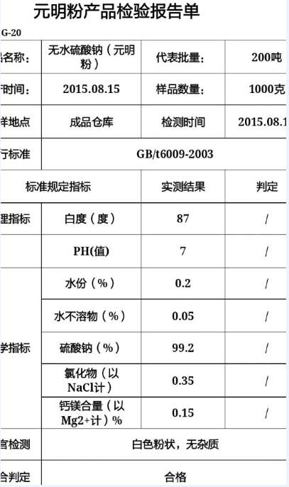7 、主要用作合成洗滌劑的填充料。造紙工業用于制造硫酸鹽紙漿時的蒸煮劑。玻璃工業用以代替純堿。化學工業用作制造硫化鈉、硅酸鈉和其他化工產品的原料。紡織工業用于調配維尼綸紡絲凝固浴。醫藥工業用作緩瀉劑。還用于有色冶金、皮革等方面。